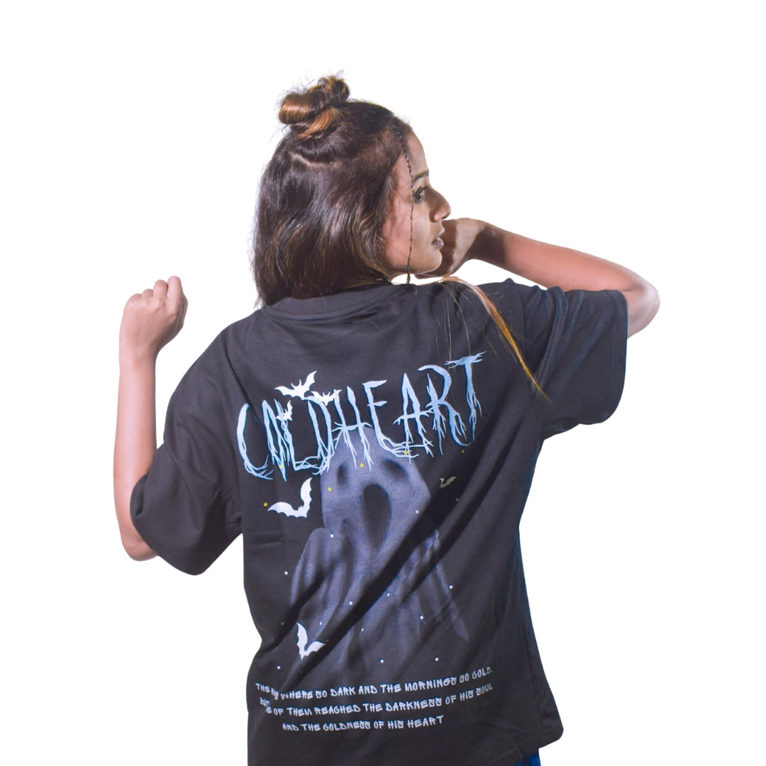 Embrace a new level of comfort and style with our Coldheart Print Black Oversized T-shirt. Crafted for both men and women, this wardrobe essential offers a blend of fashion and comfort that's perfect for any occasion.Discover the features that make this t-shirt a must-have in your collection. Ultimate Comfort , Timeless Design , Unisex Fit , Easy to Style